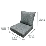 - 2-Piece Cushion Set; Includes Back: 20” L x 24” W x 7” H / Seat: 24” L x 24” W x 5.5” H